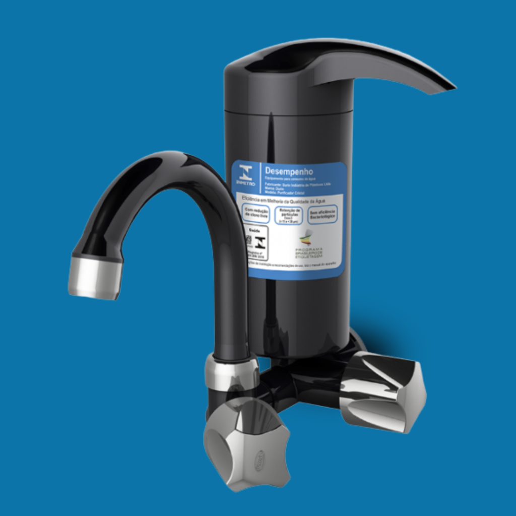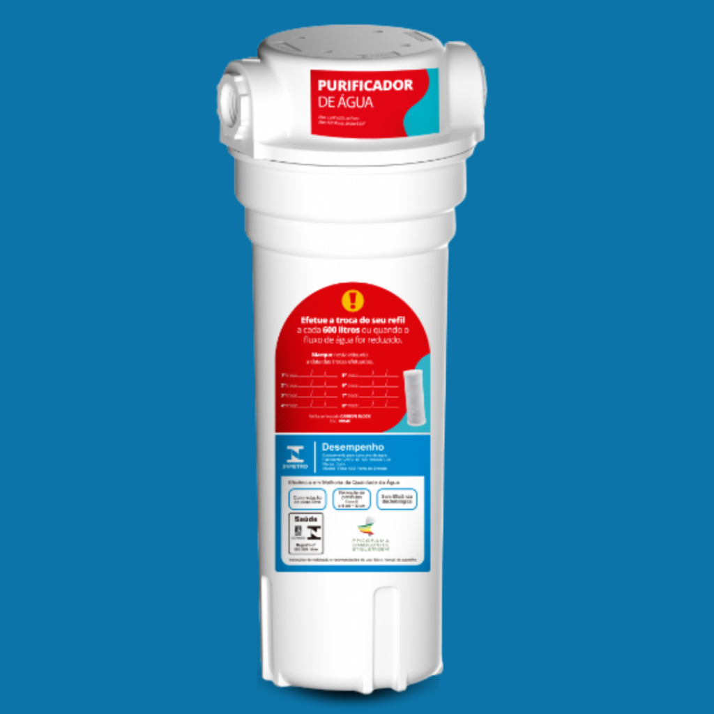 Com design moderno e prático 100% ABS, purifica a água evitando constante aquisição de garrafas e galões.