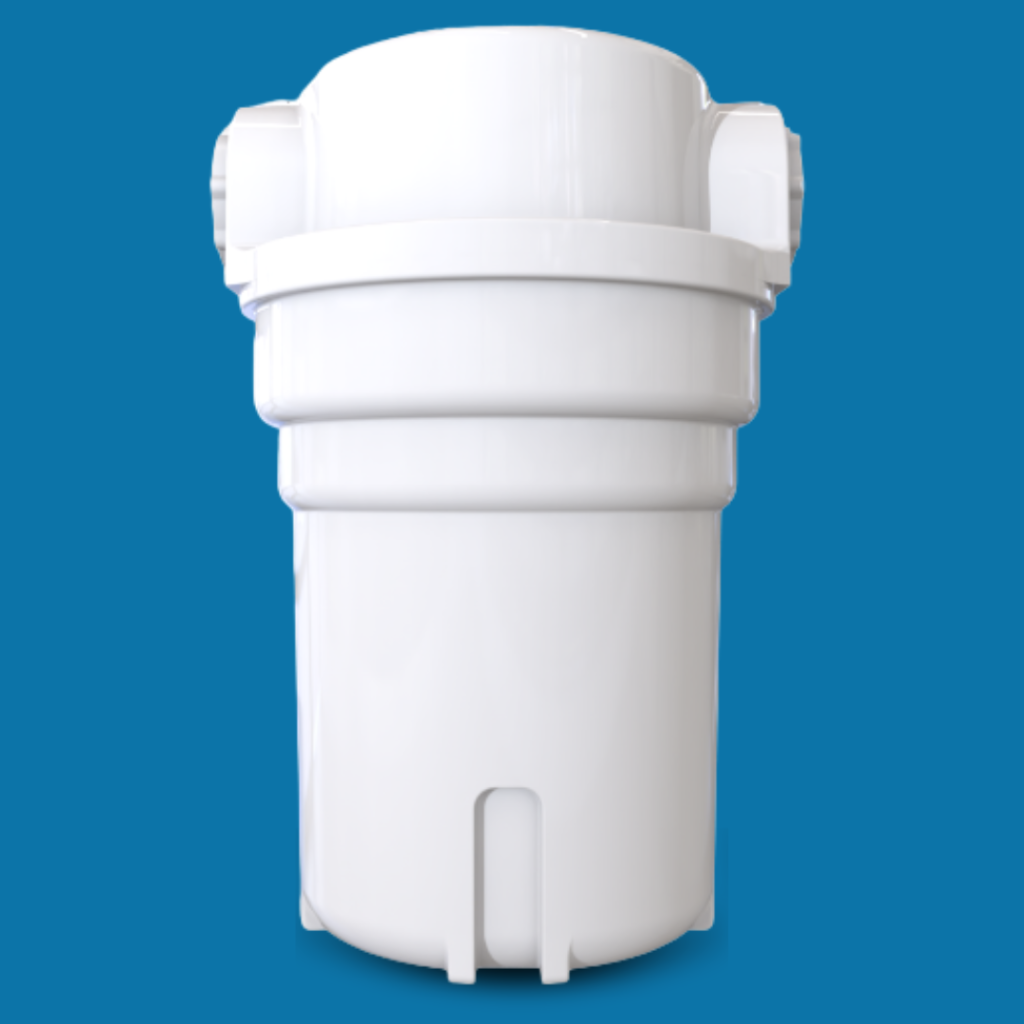 Purificador Branco H20 Ponto de Uso 9.3/4 possui elementos filtrantes propícios a redução do cheiro e quantidade do cloro, permitindo o consumo da água.